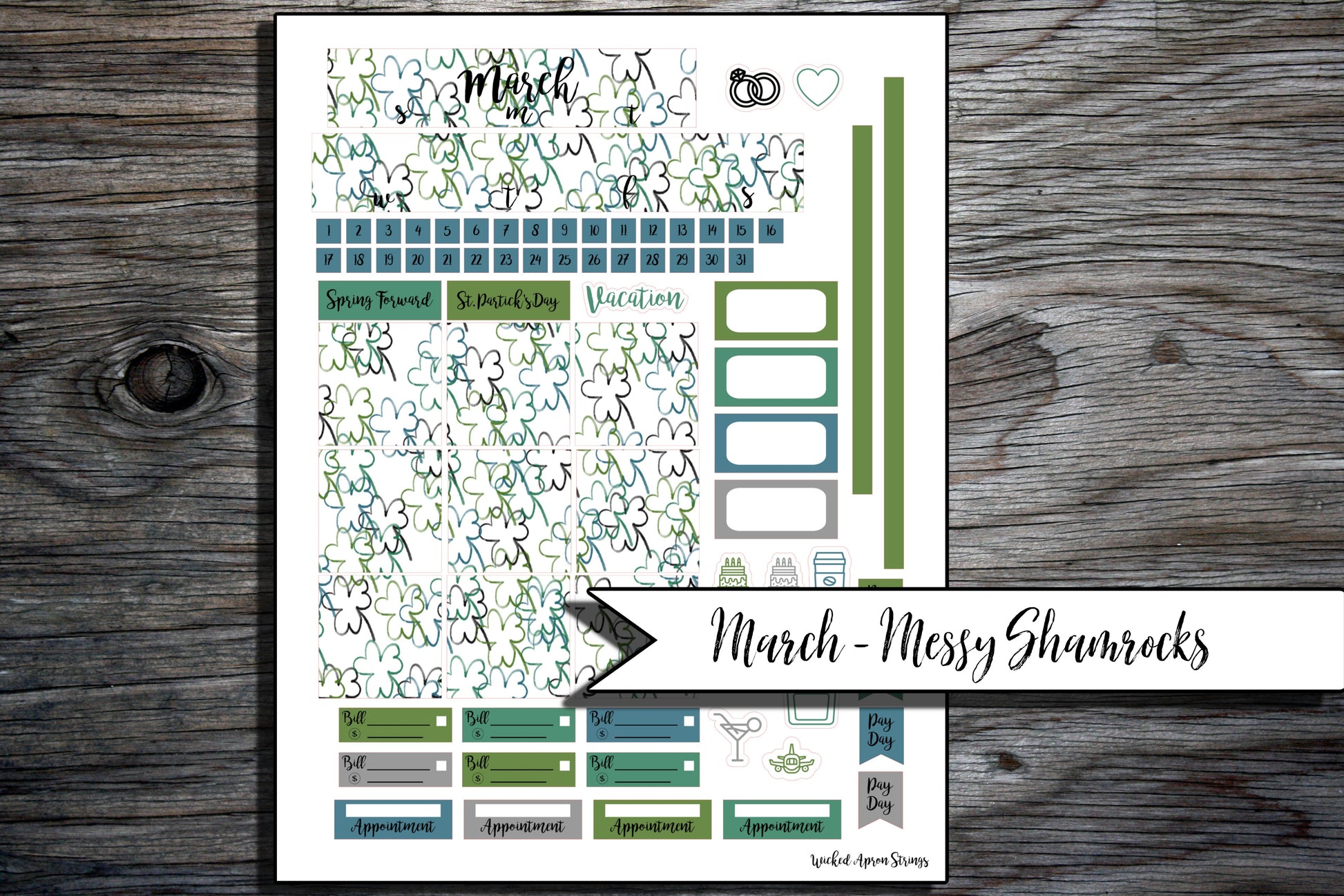 Printable Stickers for Classic Happy Planner Monthly Planner Spread : March - Messy Shamrocks