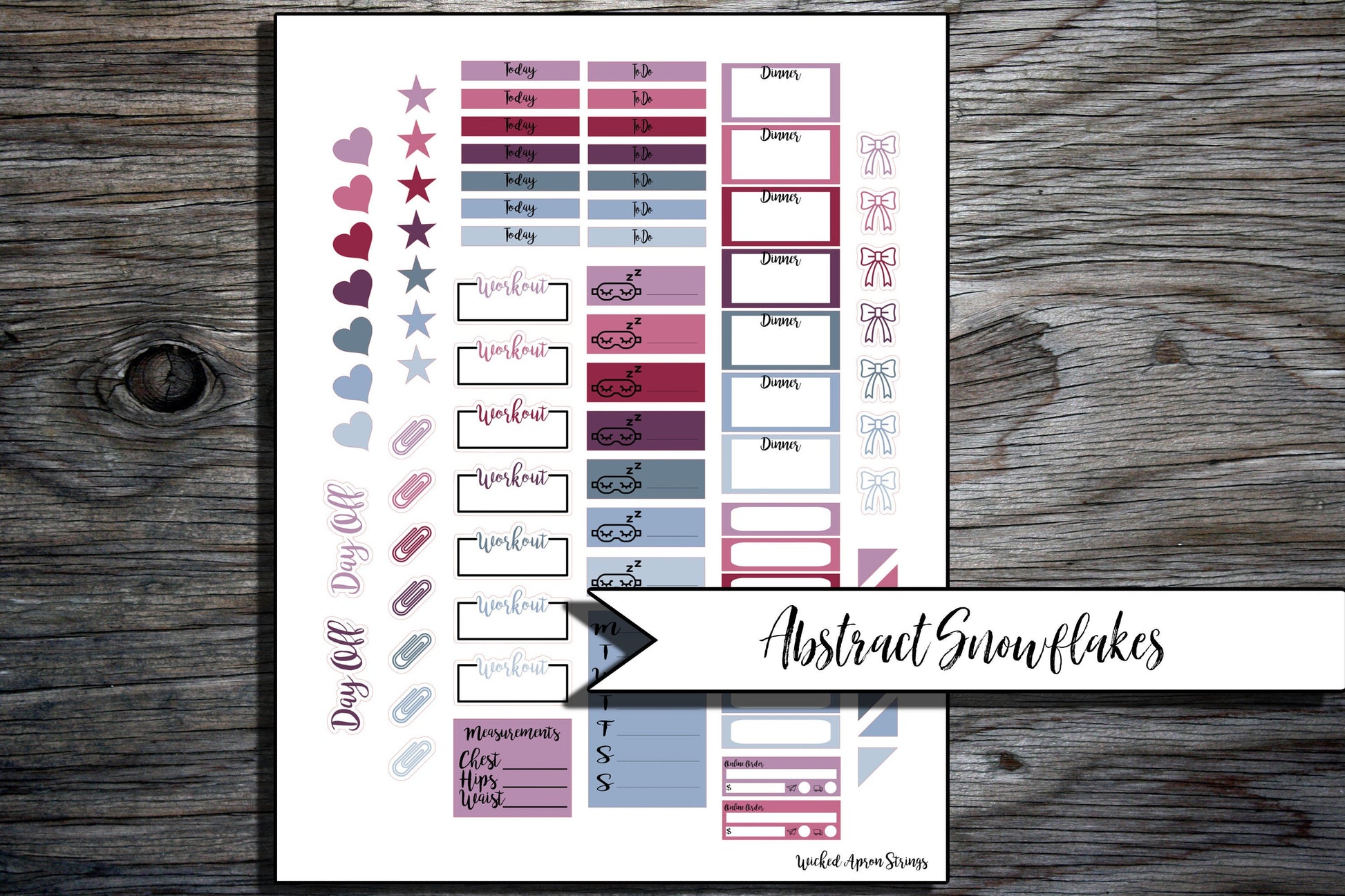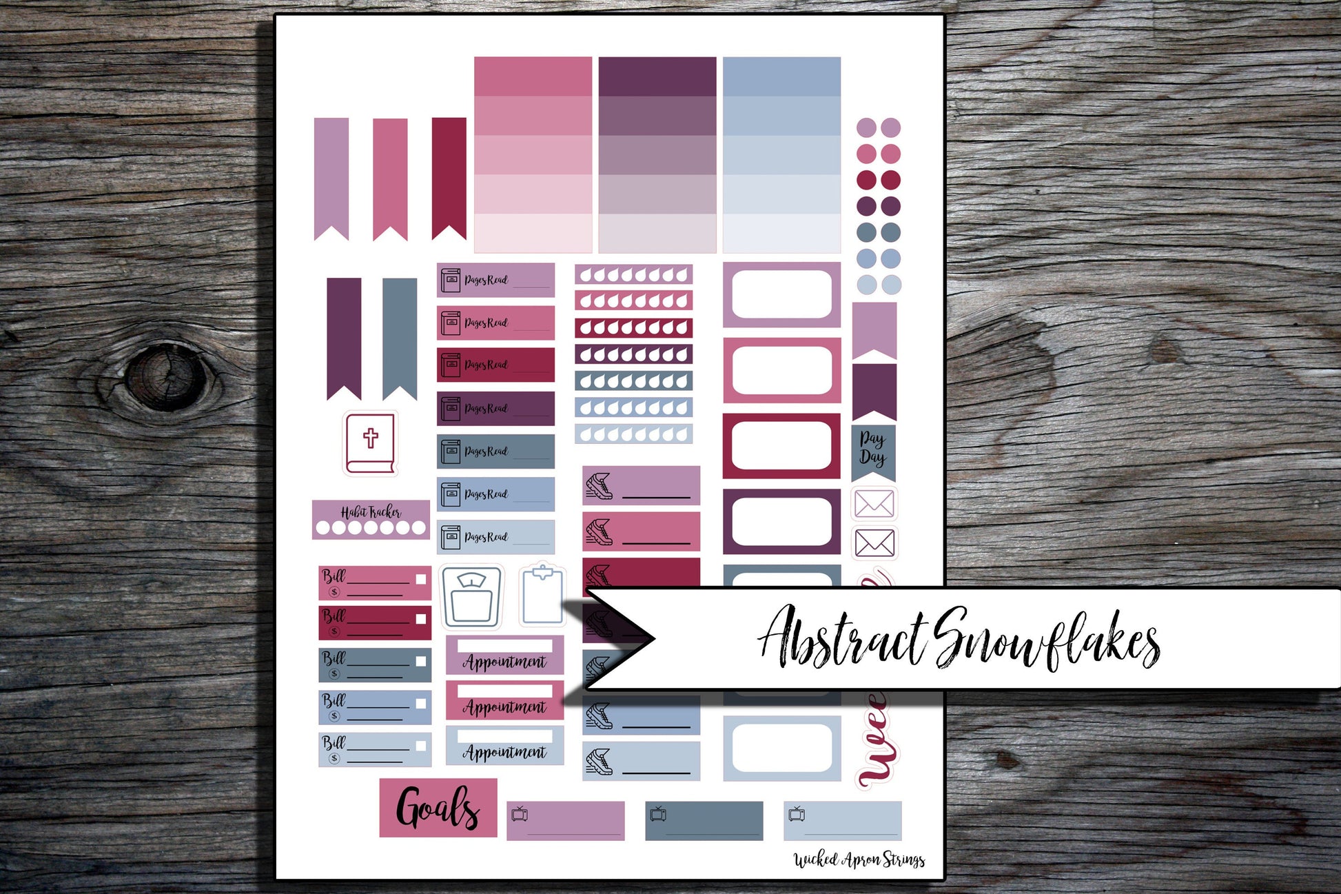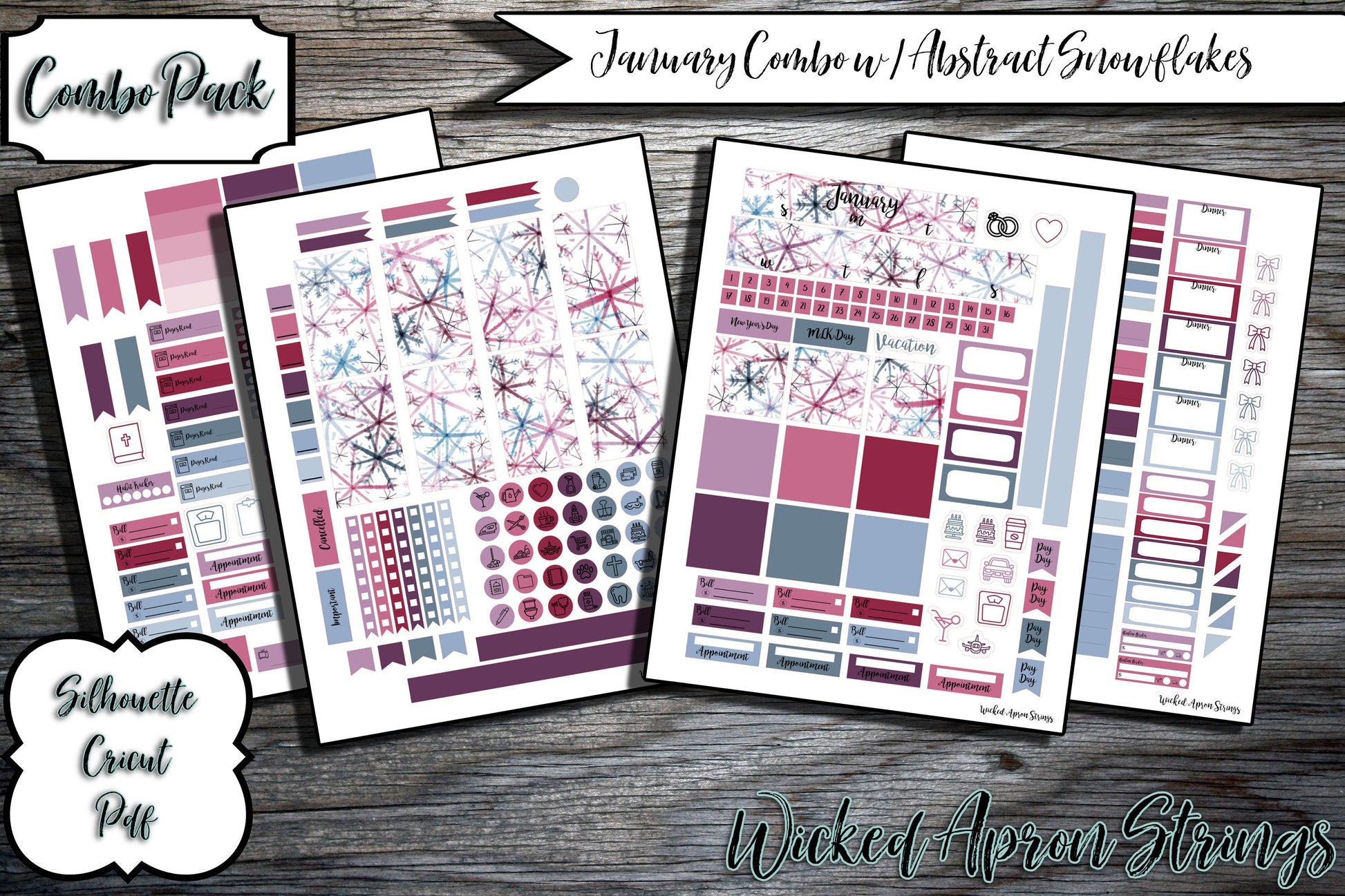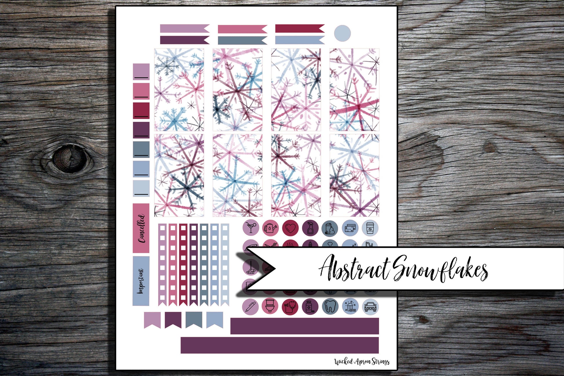 : January Combo Pack- Abstract Snowflakes : Printable Stickers for Classic Happy Planner Monthly and Weekly Planner Spread :