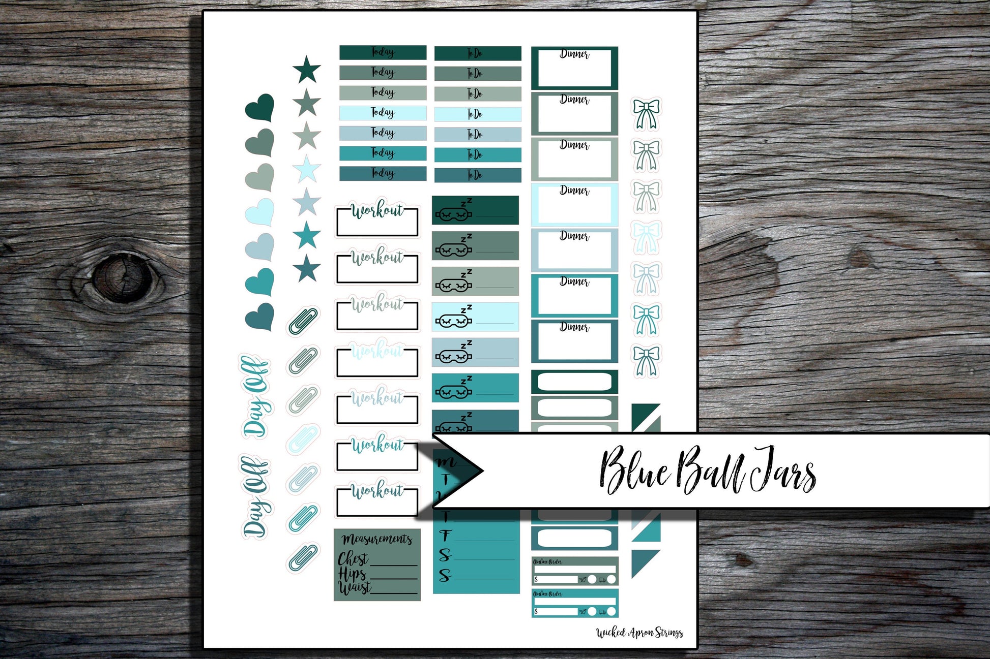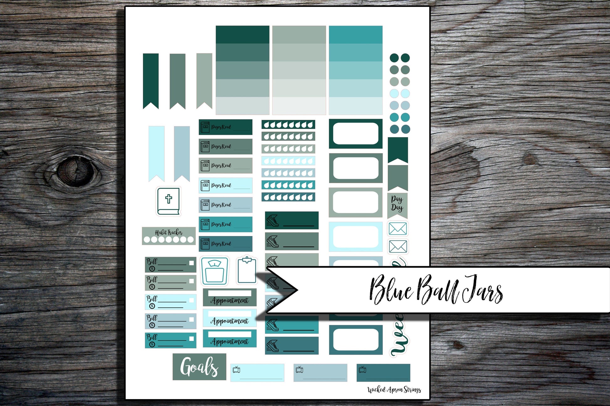 Printable Stickers for Classic Happy Planner Weekly Planner Spread : Blue Ball Jar