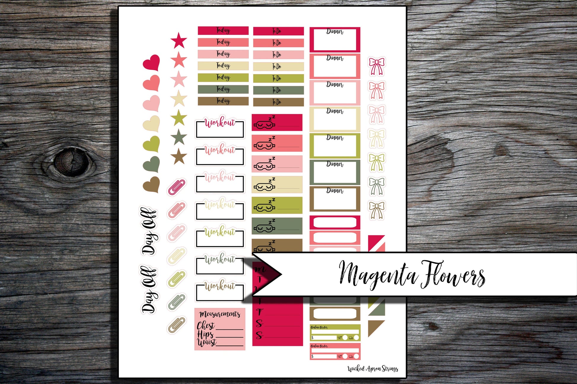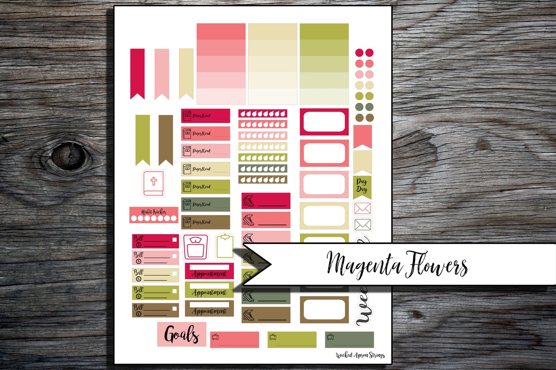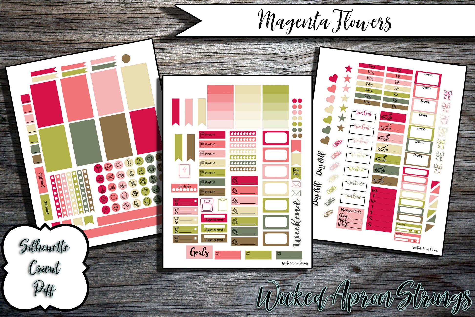 Printable Stickers for Classic Happy Planner Weekly Planner Spread : Magenta Flowers