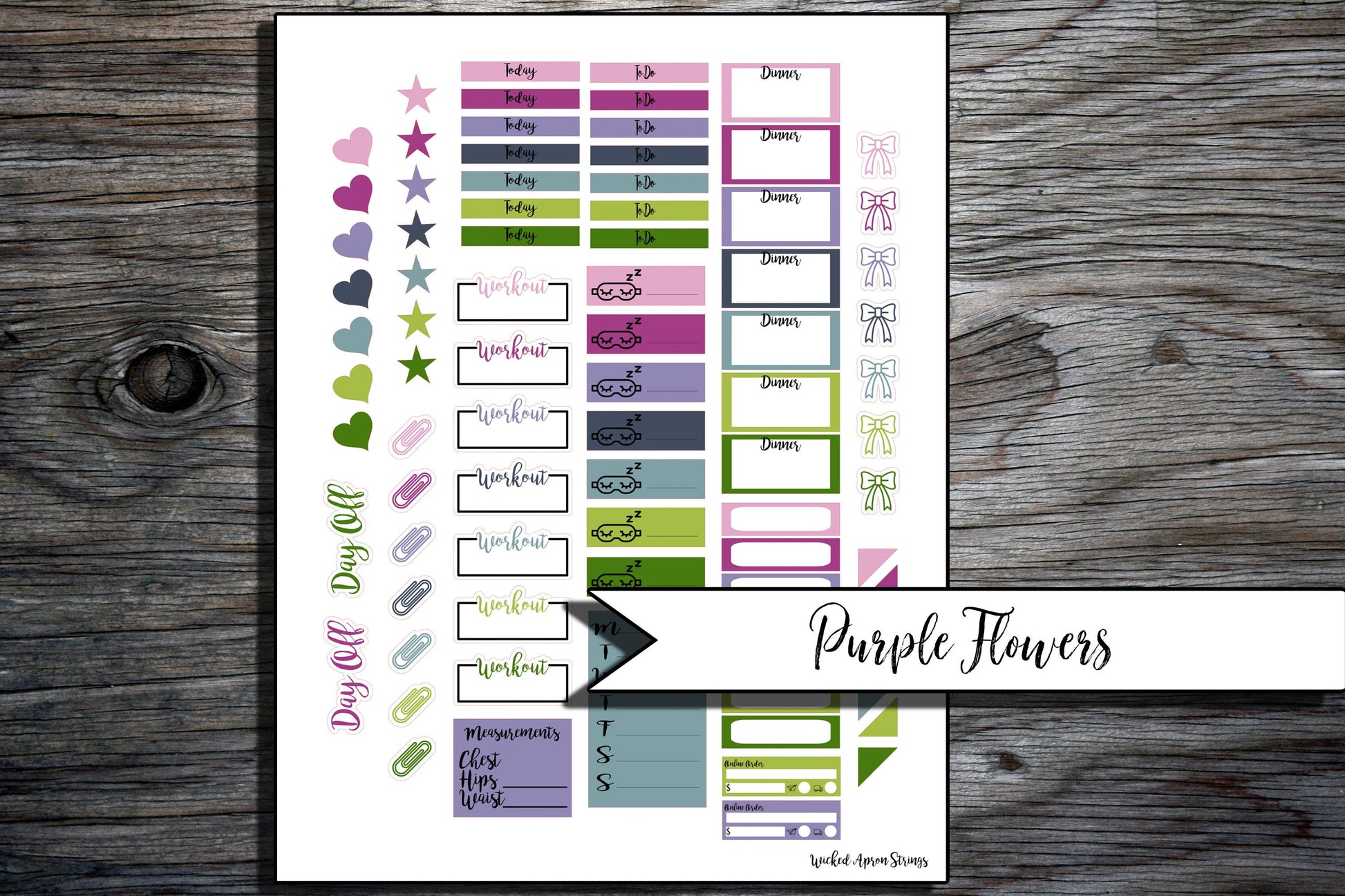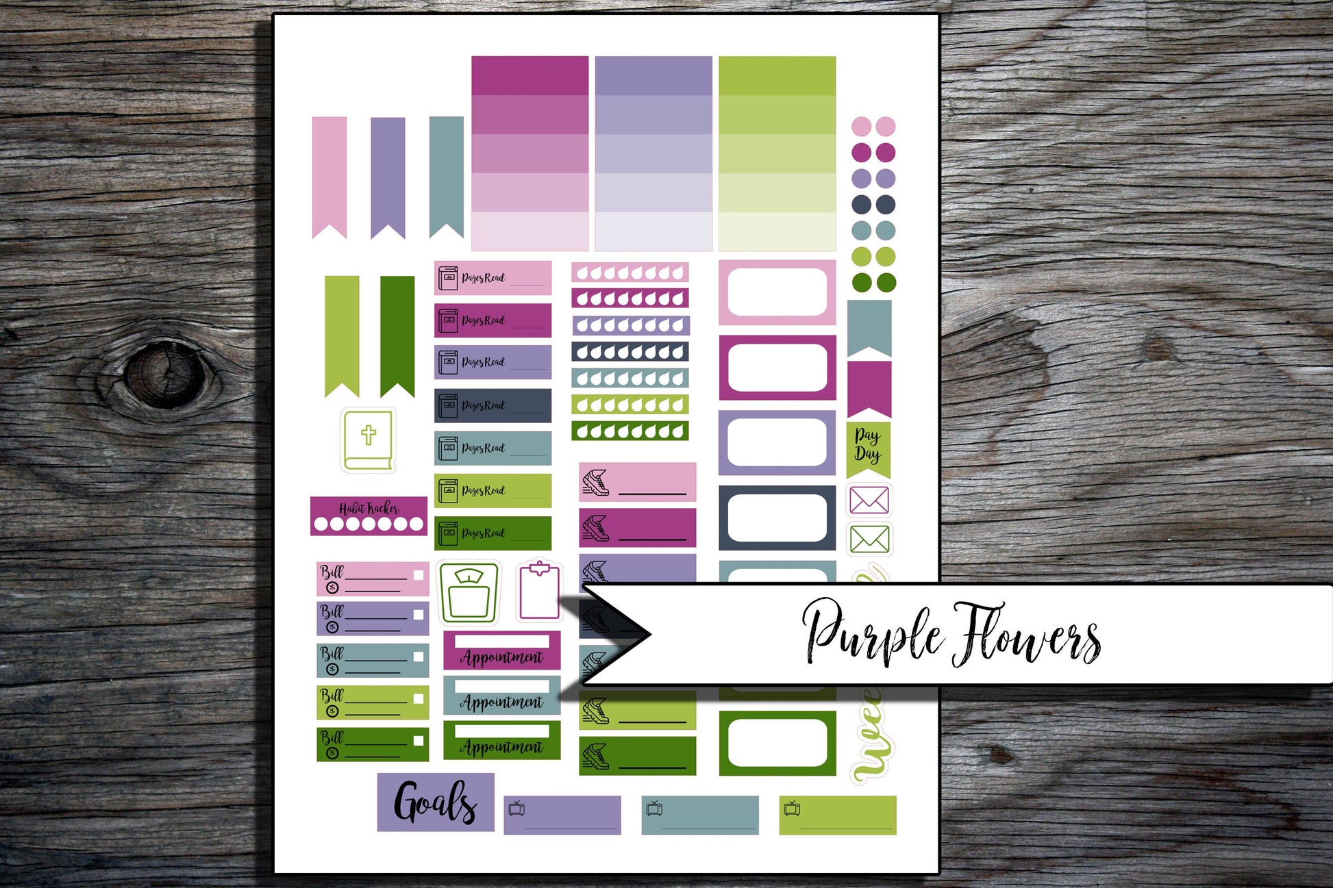 Printable Stickers for Classic Happy Planner Weekly Planner Spread : Purple Flowers