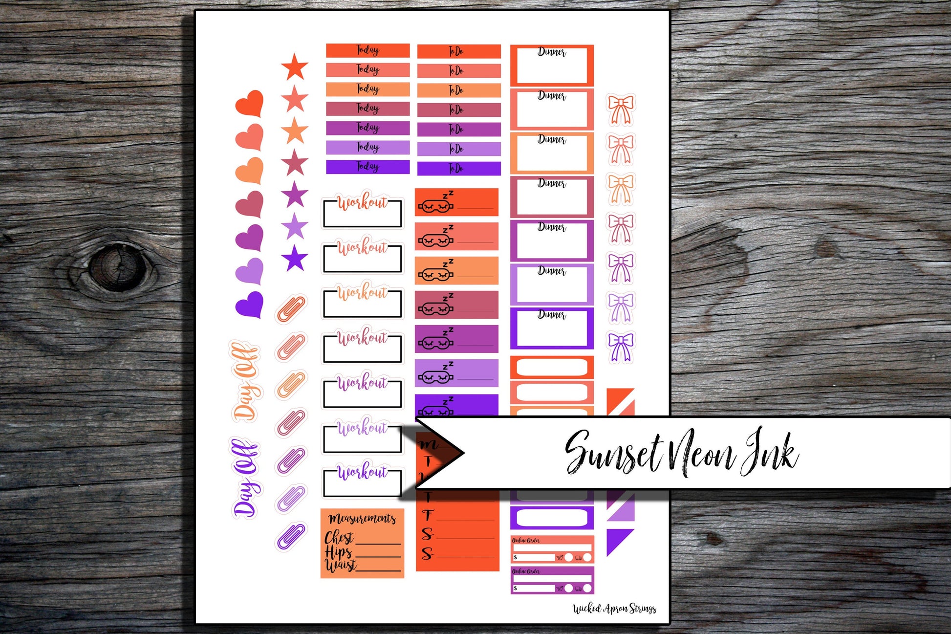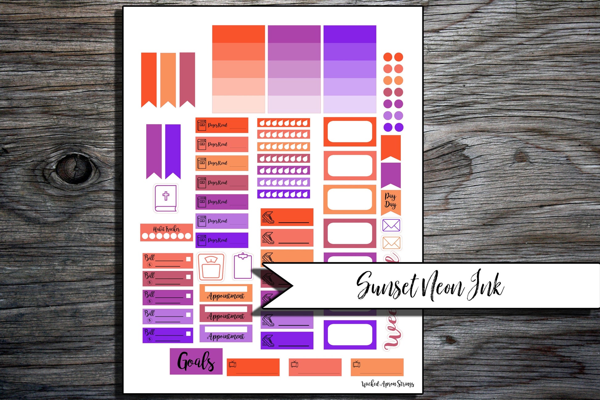 Printable Stickers for Classic Happy Planner Weekly Planner Spread : Sunset Neon Ink